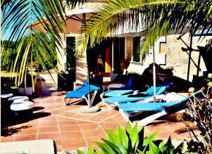 4 zusätzliche Sonnenliegen unter großem Öl-Baum